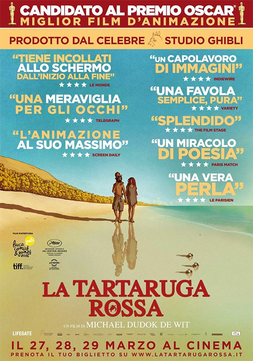 [scroll=320]Titolo originale: La tortue rouge Nazione: Francia, Belgio Anno: 2016 Genere: Animazione Durata: 80' Regia: Michael Dudok de Wit Sito ufficiale:www.latortuerouge-lefilm.com Cast: Data di uscita:27 marzo 2017 Trama: Un naufrago su un'isola deserta cerca disperatamente di fuggire, finché un giorno incontra una strana tartaruga che cambierà la sua vita.[/scroll]