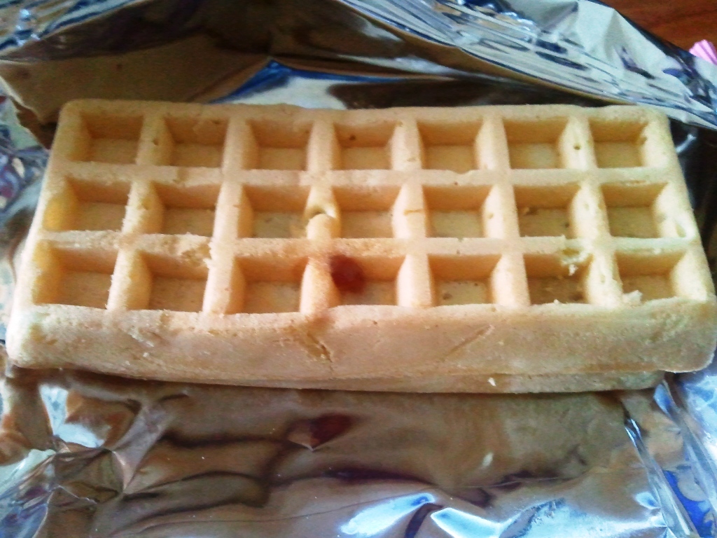 Oggi a mensa ho mangiato un piattone di pasta aglio, olio e peperoncino (era da tanto che non la mangiavo, in Sicilia mi butto sul pesce) e un bel po' d'uva verde, ma poco fa si è creato un buco nel mio stomaco e l'ho tappato con un waffle preso nel distributore automatico sotto al mio ufficio. Non male...