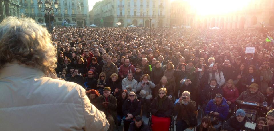 TGCOM24 sta trasmettendo alcuni spezzoni, facendo bene attenzione a non inquadrare la piazza piena come un formicaio.