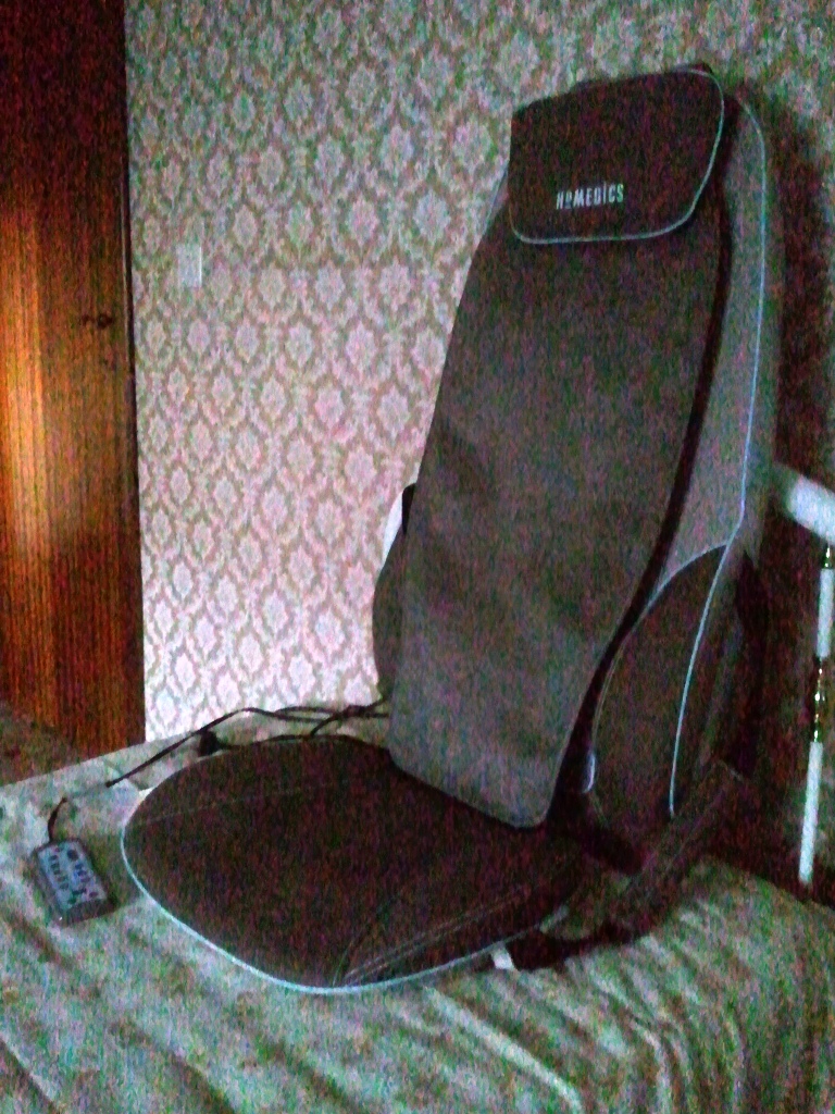 Il massaggiatore lo avete già visto: nella foto sta sul letto vicino al mio, pronto all'uso ogni volta che sono in casa e ho tempo di rilassarmi (di solito prima di andare a dormire).